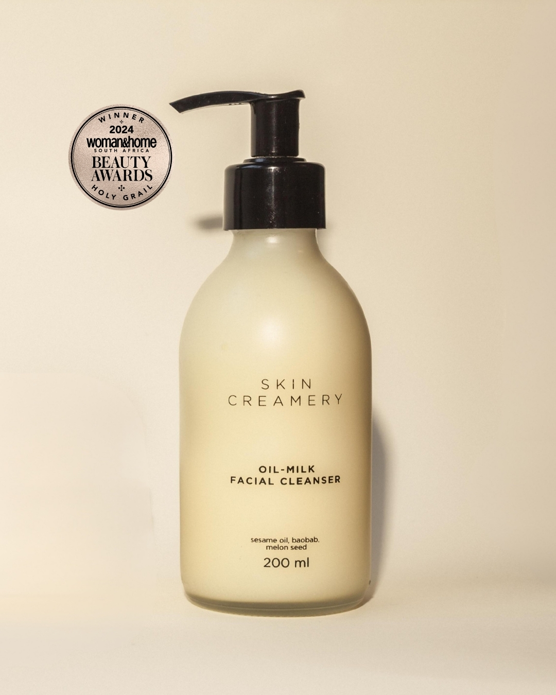 • Oil-Milk Facial Cleanser (200ml) — A gentle, dual-phase cleanser that melts into the skin and lifts away SPF, makeup, and the day itself without disturbing the barrier. Rinses clean. Leaves softness, not dryness. Winner: Woman&Home Beauty Awards 2024 — Holy Grail.